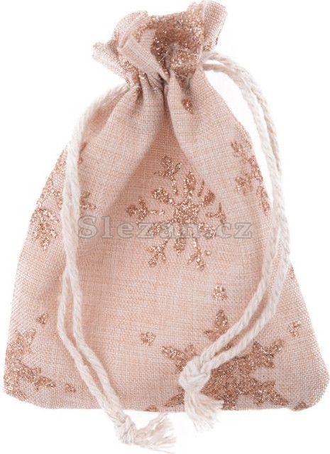 Popis Pytlík lněný stahovací 11x14cm, béžový s vločkami