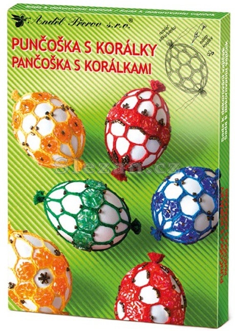 Obsah balení: Různé barevné skleněné korálky, 4 síťky na vajíčka, lepidlo 10 g.