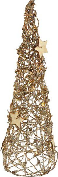 Stromek 30 cm ratan. Vánoční, ratanový stromek, který je vysoký 30 cm a je zdobený zlatými hvězdami, je vhodný jako dekorace do interiéru nebo do exteriéru.