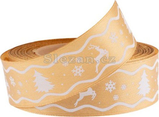 Stuha vánoční 25mmx18m saténová, zlatá s potiskem