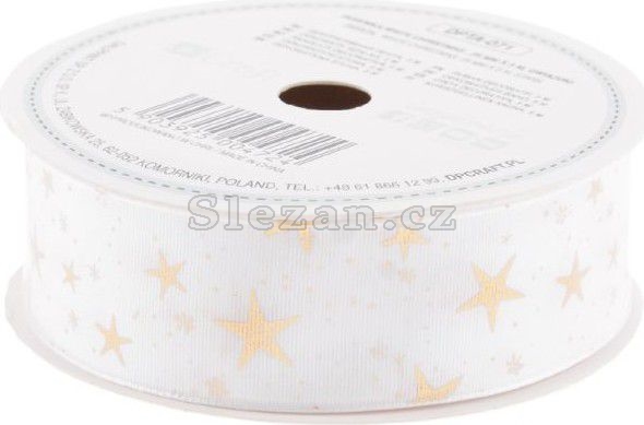 Popis Stuha vánoční 25mmx5m bílá se zlatými hvězdami