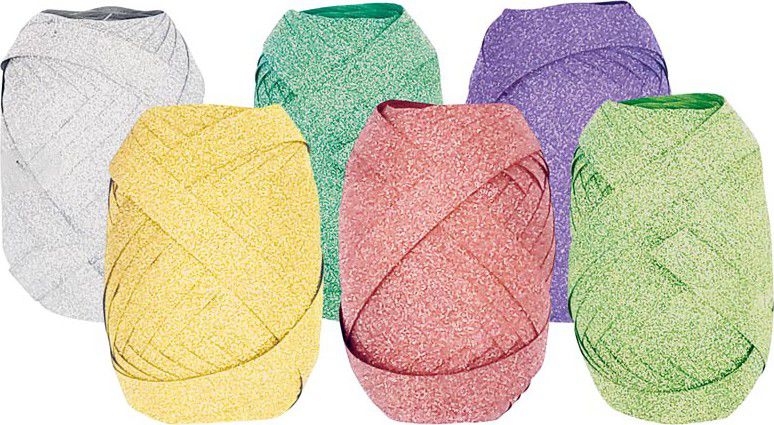 Vázací stuha s glitrem v mixu barev. Vázací stuha je vhodná k balení dárků, dárkových balíčků nebo vázání květin. Přetažením konců stužky přes nůžky můžete vytvářet nádherné lokny a stuhu různě zakroutit. Díky tomu bude Váš dárek nádherně naaranžovaný. Šíře: 5 mm Délka: 20 m Barva: mix glitrových barev (stříbrná, zlatá, tmavě zelená, červená, fialová, světle zelená) Uvedená cena je za 1 ks.