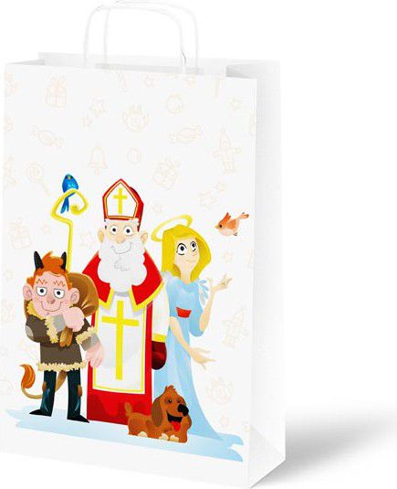 Mikulášská papírová dárková taška, která je ideální na zabalení dobrot, sladkostí a na další mikulášskou nadílku pro děti. S pevným uchem pro pořádnou nadílku.