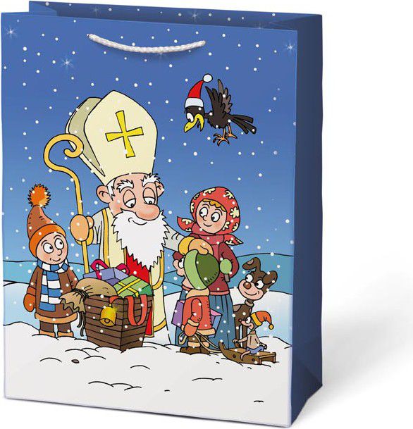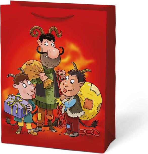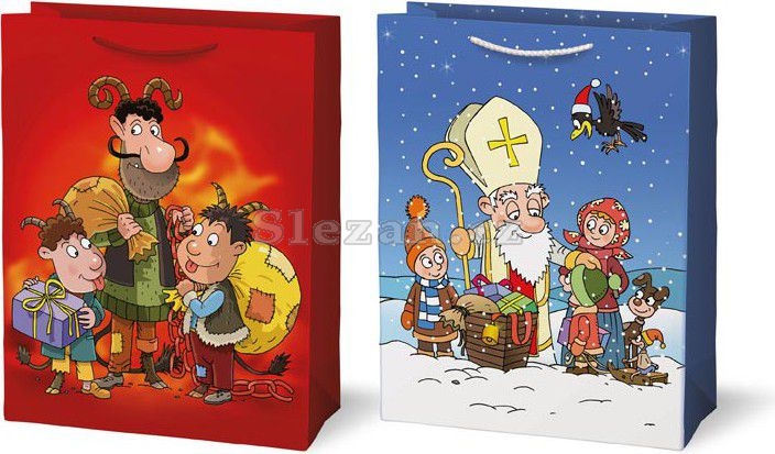 Papírová dárková taška T5 s motivem Mikuláše nebo čertů. Tašky dodáváme ve dvou motivech, s čerty nebo s mikulášem. Taška je opatřena pevným uchem pro snadné nošení a kartičkou, kam můžete napsat jméno nebo krátké věnování. Pokud nemáte čas balit dárek do dárkového balícího papíru, tak právě pro Vás máme široký výběr dárkových tašek.