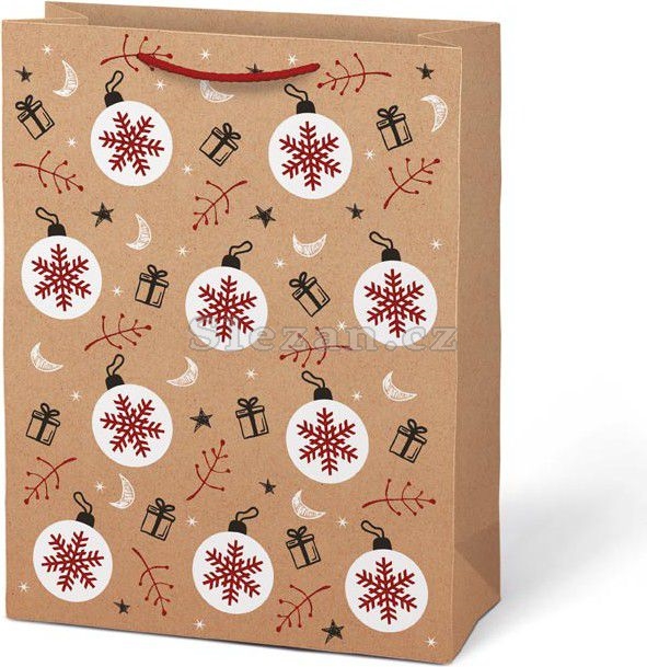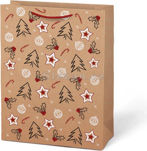 Vánoční papírová dárková taška L LUX v moderním designu. Ideální na předání dárků, které je těžké zabalit do dárkového balícího papíru. Taška je opatřena pevným uchem pro snadnější přenášení.