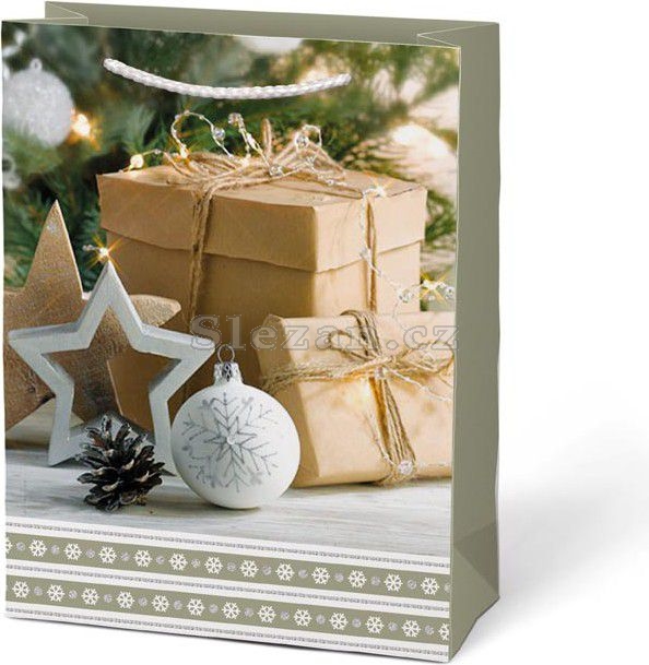 Vánoční dárková papírová taška T4 je ideální na předání dárků a velkým pomocníkem, když je těžké dárek zabalit do dárkového balicího papíru. Taška je opatřena pevným uchem.