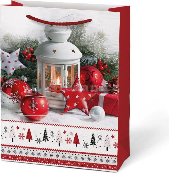 Vánoční dárková papírová taška T4. Je ideální na předání dárků a velkým pomocníkem, když je těžké dárek zabalit do dárkového balicího papíru. Taška je opatřena pevným uchem.