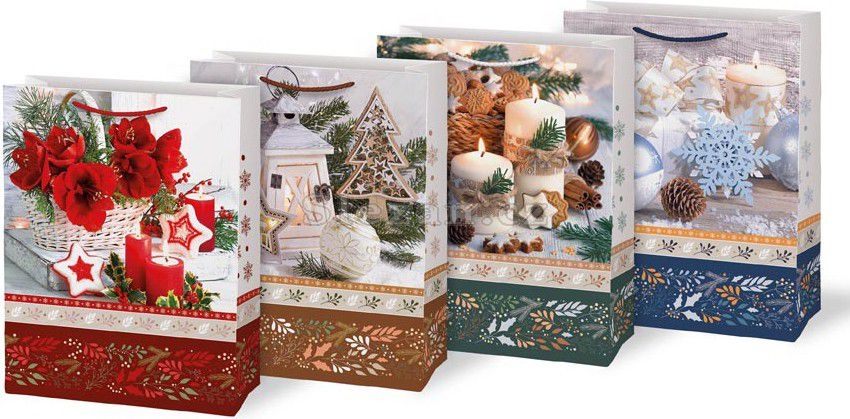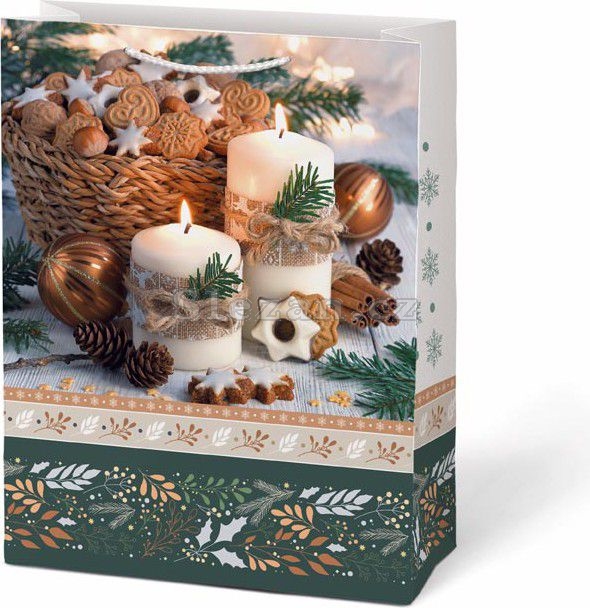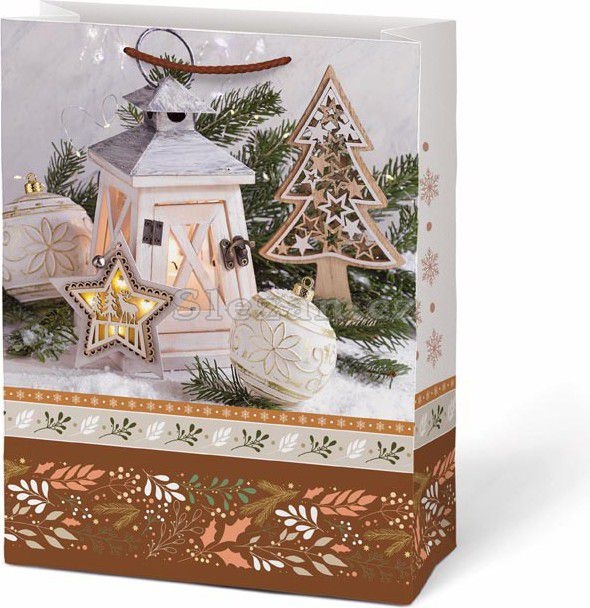 Vánoční dárková papírová taška T5 je ideální na předání dárků, které je těžké zabalit do dárkového balícího papíru. Taška je opatřena pevným uchem.