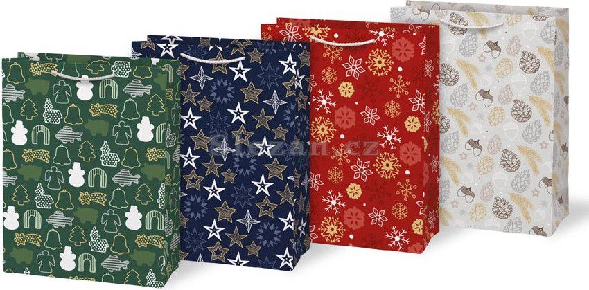 Vánoční dárková papírová taška T5 je ideální na předání dárků a velkým pomocníkem, když je těžké dárek zabalit do dárkového balicího papíru. Taška je opatřena pevným uchem.
