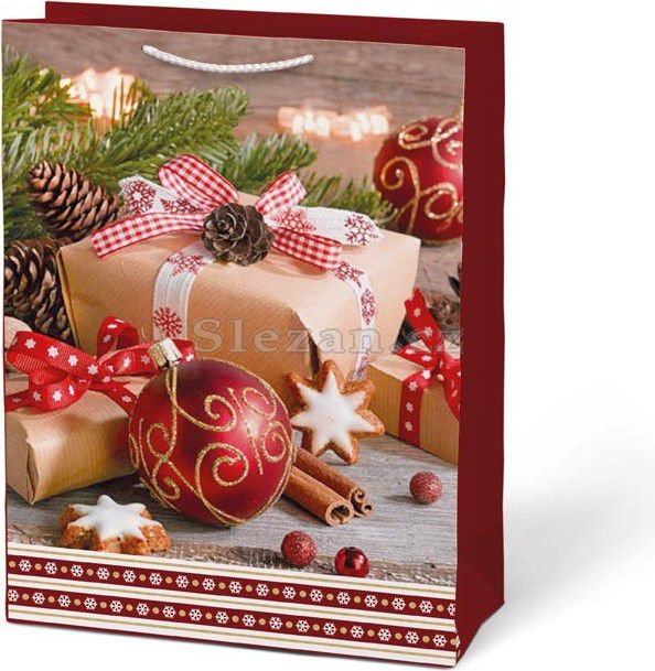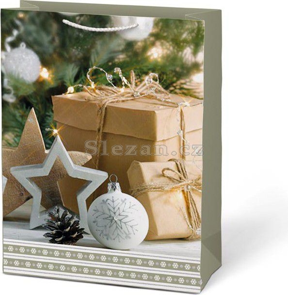 Vánoční dárková papírová taška T10 je ideální na předání dárků a velkým pomocníkem, když je těžké dárek zabalit do dárkového balicího papíru. Taška je opatřena pevným uchem.