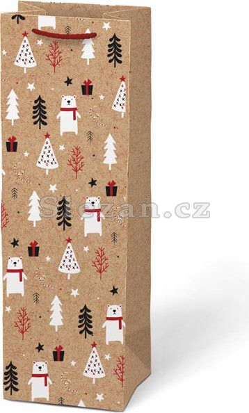 Vánoční dárková papírová taška T12 na víno nebo jinou lahvinku. Taška je opatřena pevným uchem pro snadné nošení. Pokud nemáte čas balit dárek do dárkového balícího papíru, tak právě pro Vás máme široký výběr dárkových tašek.