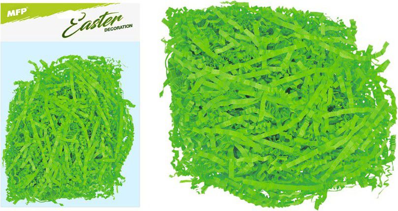 Dekorační papírová tráva je ideálním pomocníkem při vytváření různých dekorací. Vyrobte si originální jarní nebo velikonoční dekoraci. Může sloužit například jako ozdoba do květináčů, při tvorbě věnců, lze také využít ve floristice či při aranžování. Tráva je vyrobena ze zeleného papíru. Hmotnost: 30g Barva: zelená Vyrobeno z papíru