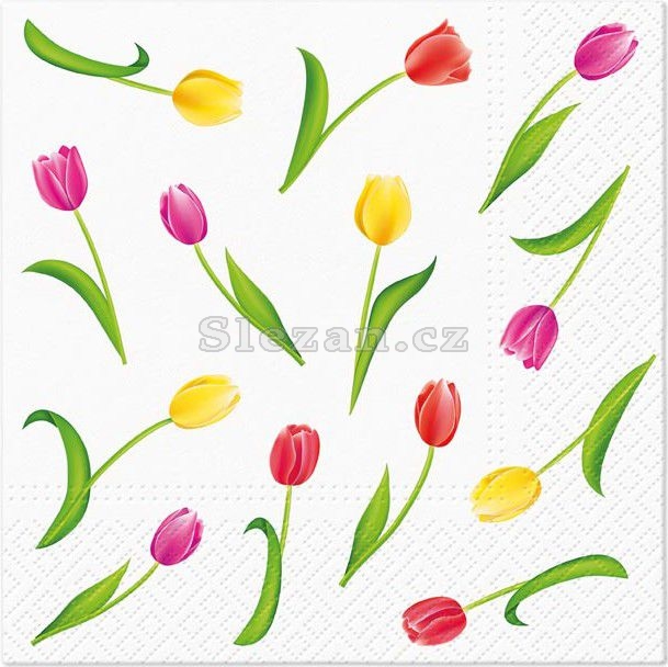Papírový velikonoční ubrousek. Krásné velikonoční ubrousky s obrázky tulipánů dodají prostřenému stolu nádech přicházejícího jara a vykouzlí příjemnou atmosféru u slavnostního oběda nebo večeře. Ubrousek je kvalitní z třívrstvého papíru. Vhodný i na ubrouskovou techniku a různé dekorace. MOTIV: tulipány POČET UBROUSKŮ V BALENÍ: 20 ks Uvedená cena je za 1 balení po 20 ks.