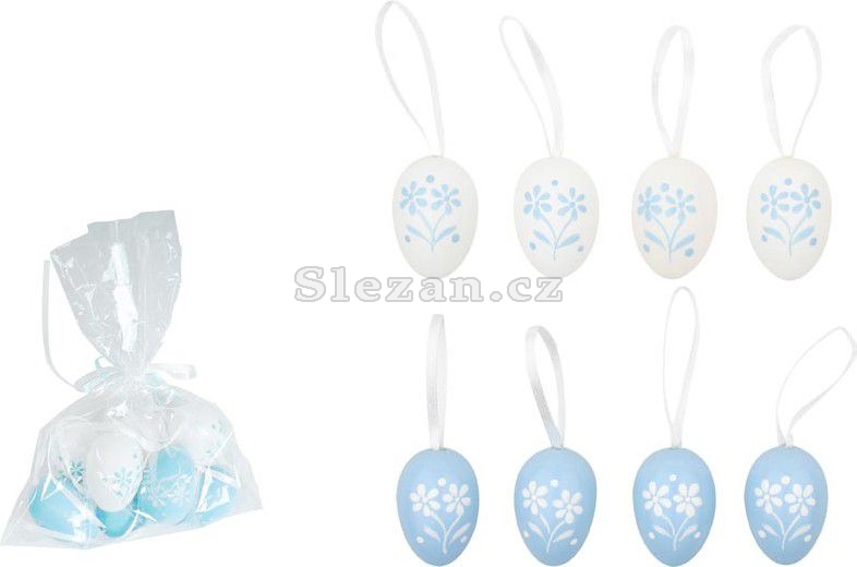 Vajíčka plastová modrá na zavěšení - Krásná velikonoční plastová dekorace v designu modrých vajíček se závěsem, poslouží jako dekorace do exteriéru nebo na zkrášlení interiéru. Tahle krásná velikonoční dekorace naladí tak velikonoční atmosféru. Balení obsahuje: - 8 ks dekorací (vajíčka) Velikost: 4 cm Dekorace má provázek na zavěšení. Uvedená cena je za 1 balení.
