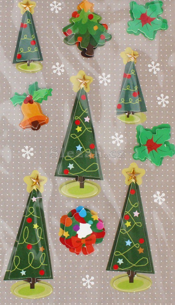 obsah balení: 10 ks 3D samolepky na vánoční stromeček, mix vzorů