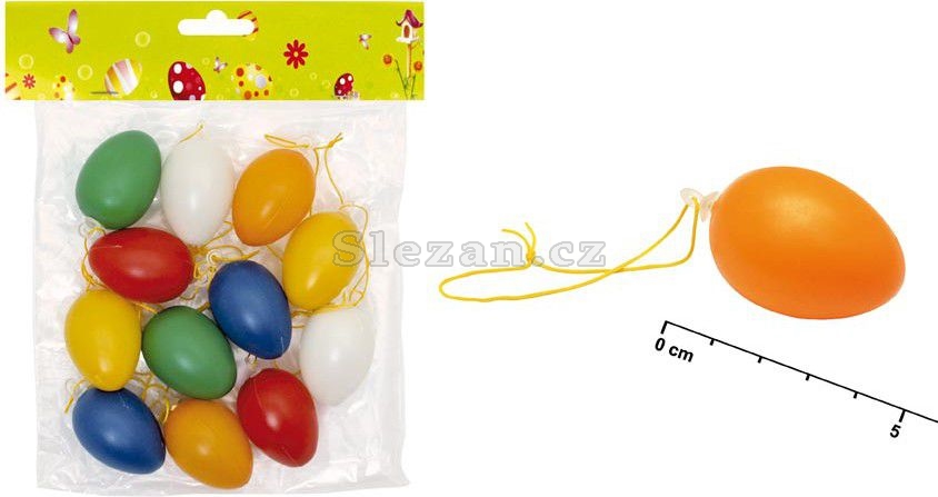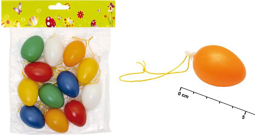 Velikonoční plastová vajíčka - Vyzdobte si svůj domov krásnými velikonočními vajíčky, které Vám vytvoří okouzlující atmosféru Velikonoc! Balení obsahuje: 12 ks plastových vajíček a v každém balení jsou 2 vajíčka bílá, žlutá, oranžová, červená, modrá a zelená, vajíčka mají šňůrku na pověšení