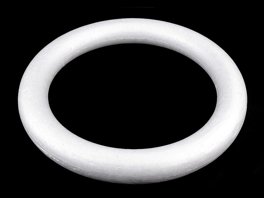 Polystyrenový věnec je vhodný k celoročnímu aranžování a zdobení. Můžete ho ozdobit stuhami, květy, plody apod. Využijete ho také na techniku nešitého patchworku.