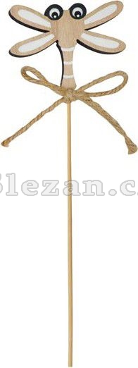 Dřevěný zápich vážka. Zápich v designu dřevěné vážky, poslouží jako krásná dekorace na Vaši zahradu nebo na zkrášlení interiéru. Velikost: 25 cm Uvedená cena je za 1 ks.