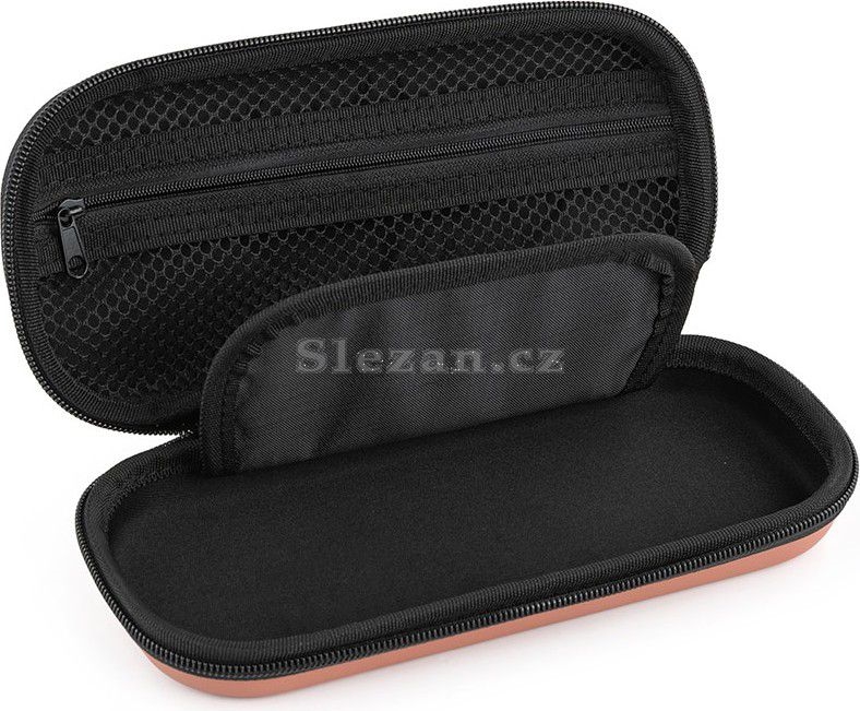Pouzdro je opatřeno pevným zipem, kapsičkou na zip a klopou.