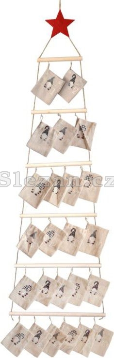 Popis Adventní kalendář Stromeček 120cm, přírodní pytlíky