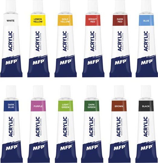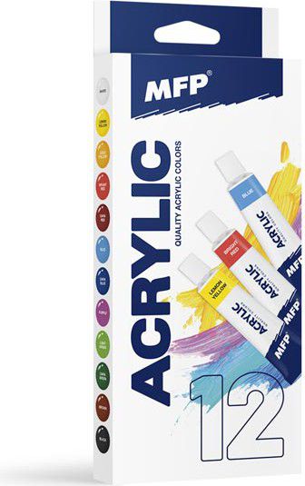 Akrylové barvy jsou vodou ředitelné a po zaschnutí voděodolné. Vyznačují se svou barevnou sytostí i stálostí, jemnou a hladkou konzistencí a velmi dobrými krycími schopnostmi. Jsou vhodné na všechny nemastné a hladké povrchy, jako jsou plátna, papír, dřevo, kámen atd. Velkým hitem pro děti i dospělé je i malování na kamínky. Této zábavě již propadly celé rodiny a právě pro ně jsou tyto barvy také určeny. Po zaschnutí doporučujeme barvu ještě zafixovat akrylovým lakem, který kresbu dokonale ochrání. Set obsahuje 12 barev v kovových tubách, Barvy v balení: černá, bílá, tmavě modrá, světle modrá, tmavě červená, světle červená, růžová, hnědá, tmavě zelená, zelená, tmavě žlutá, světle žlutá Obsah barvy v tubě: 12 ml