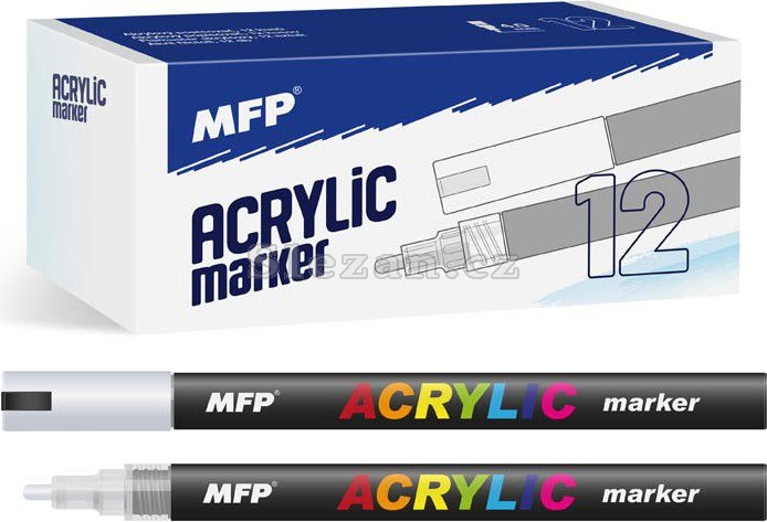 Akrylový stříbrný popisovač. Tyto akrylové popisovače se vyznačují svou barevnou sytostí i stálostí, a velmi dobrými krycími schopnostmi.