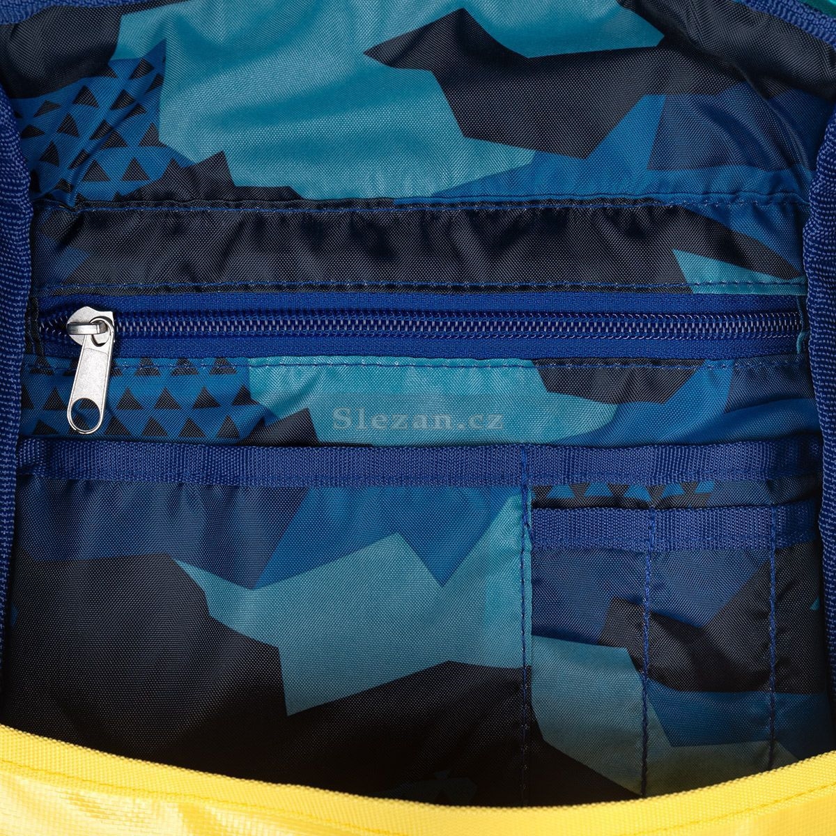 Vnitřní prostor aktovky BEBE je členěn na tři části žlutými nepropustnými přepážkami. Uvnitř hlavní komory najdete i organizér - třeba na uložení čipových karet, tužky a další drobnosti. Navíc je zde malá uzavíratelná kapsa na zip. Lahev s pitím doporučujeme umístit na bok aktovky do kapsičky, která je schovaná pod zipem. Na přední části aktovky najdete další dvě praktické kapsy na zip. Na horní kapičce je našitá blikačka, která může svítit nebo blikat ve třech programech. Uvnitř horní kapsy najdete jmenovku a malou síťovou kapsu na zip. Do horní kapsy se vejde i penál PENN 21012 nebo krabička na svačinku. Spodní kapsička je menší, pojme potřebné drobnosti jako klíče nebo kapesníčky. Samozřejmostí je dostatek reflexních prvků na všech stranách batohu i ramenních popruzích.