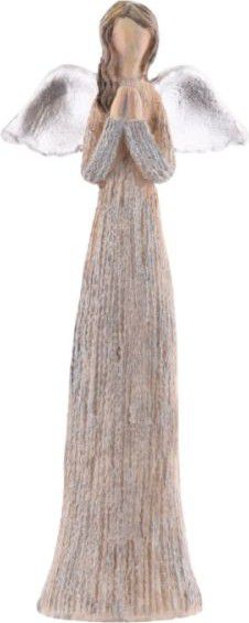 Anděl je vyrobený z polyresinu, křídla jsou stříbrná, šaty jsou šedé.