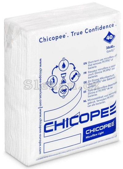 Jednorázové utěrky Chicopee Microfibre Light jsou určeny na povrchové čištění a krátkodobé použití. Nezanechávají šmouhy a z povrchu odstraňují 99% bakterií.