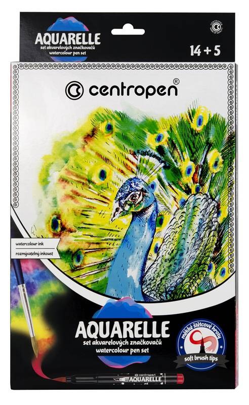 Sada obsahuje soupravu 12 akvarelových značkovačů se štětcovými hroty, značkovače jsou plněny inkoustem, který lze na speciálním papíře kombinovat a rozmývat vodou pomocí štětce, po zaschnutí je možné obrázek domalovat černým linerem, vypratelný inkoust, průměr hrotu 5 mm, šířka stopy 1-9 mm, 1 štětec, 1 liner a 5 kusů speciálního papíru pro akvarelovou technilu.