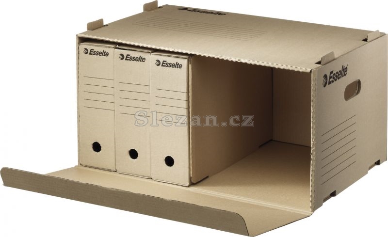 Kontejner slouží pro ukládání archivačních krabic a zároveň pro spolehlivou ochranu Vašich dokumentů. Otevírání zepředu umožňuje snadný přístup k archivovaným dokumentům i v případě, že kontejnery stohujeme na sebe. Pro zajištění stability při stohování jsou kontejnery k sobě vzájemně připevněny pomocí speciálních otvorů a úchytů. Kontejner pojme 6 krabic se šířkou hřbetu 8 cm nebo 5 krabic s šířkou hřbetu 10 cm. Barva hnědá.