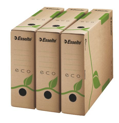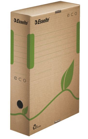 Archivační systém Esselte Eco nabízí funkční krabice navržené se zeleným přístupem. Krabice jsou 100% recyklovatelné s 85% podílem spotřebitelského odpadu a certifikovány FSC. Velikost krabic je optimalizována pouze na papíry A4 s cílem minimalizovat odpad při výrobě.