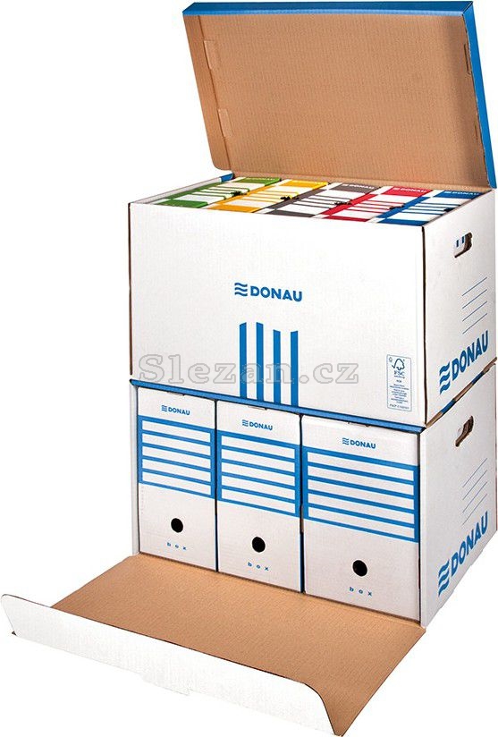 Univerzální archivační krabice s integrovaným víkem. Krabici je možno skladovat rozloženou, velmi snadné sestavení. Doporučujeme v kombinaci se 6 stojany na časopisy o šířce 80 mm, 5 archivačními boxy 100 mm nebo 4 boxy 120 mm.