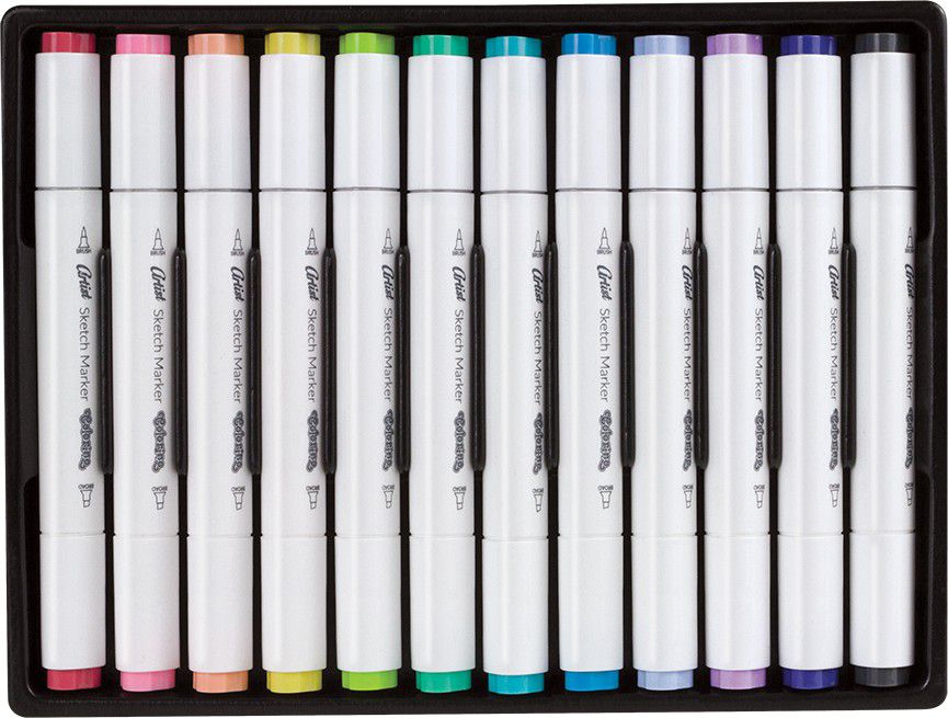 Artist fixy, trojhr., oboustr.,pastel.12 barev Artist skicovací fixy oboustranné