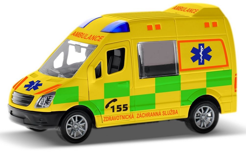 Obsah balení: automobil 3x (sanitka, policie, hasiči), dopravní značka 7x