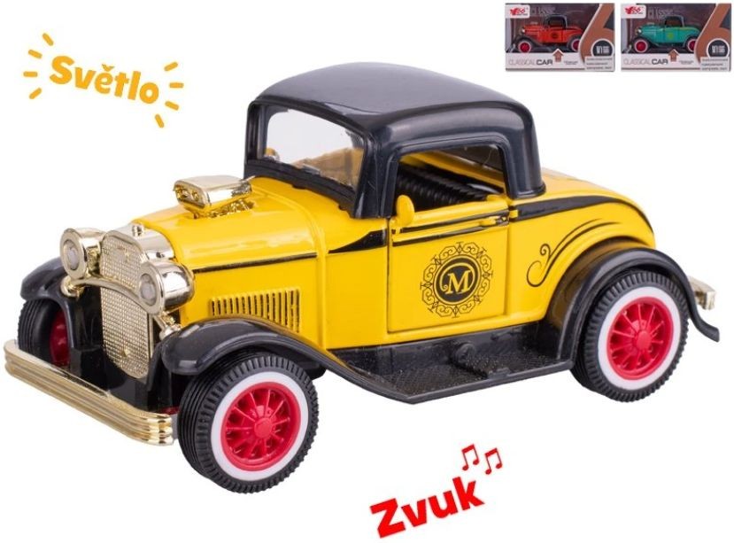 Sestavený kovový model auta old timer na zpětný chod.