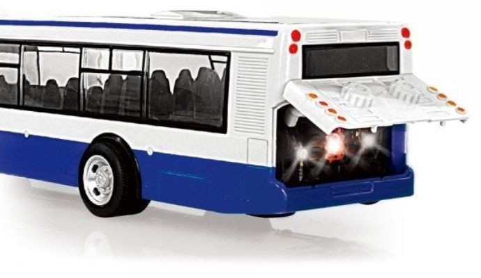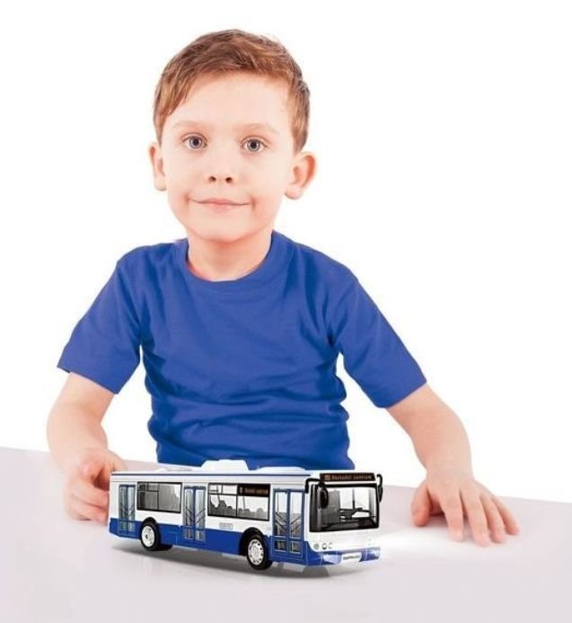 - Autobus je vyroben z plastu a jezdí na zpětný chod.