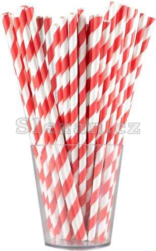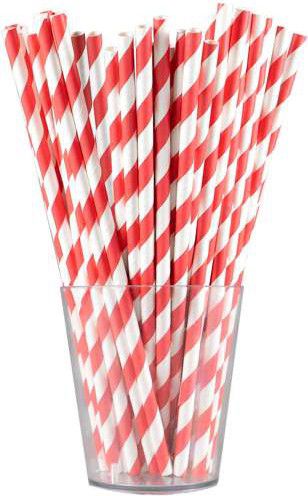 Papírová brčka s červenými pruhy.