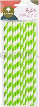 Papírová brčka se zelenými pruhy.