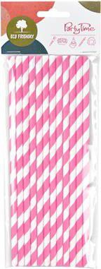Papírová brčka s růžovými pruhy.