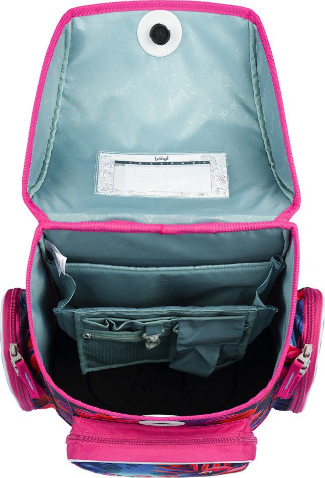 • Uvnitř aktovky je průhledná kapsa s rozvrhem a vnitřní organizér umožňující rovnoměrné rozložení hmotnosti.