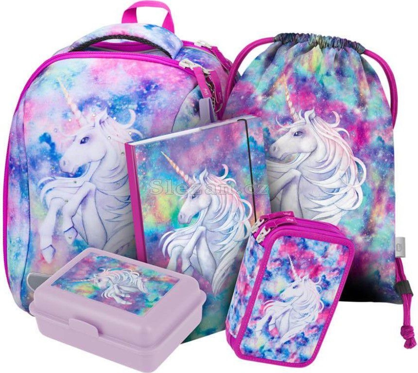 Popis BAAGL 5 SET Shelly Jednorožec: aktovka, penál, sáček, desky, box