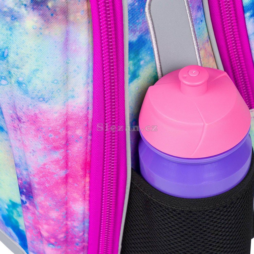 Boční kapsy z pevné síťoviny, které jsou vhodné pro jednu z našich láhví na pití.