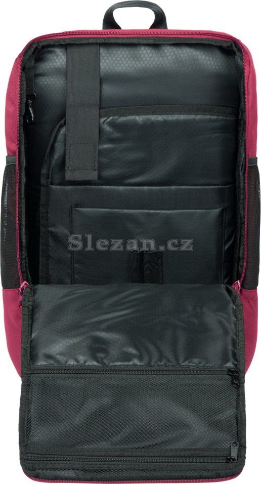 Ideální na cesty jako příruční zavazadlo do letadla. Další výhodou je zádový pruh, který slouží k fixaci batohu na madlech kufru.