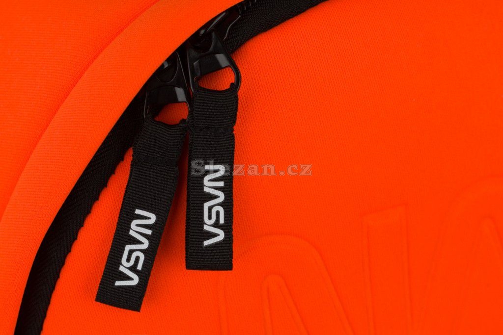 Oranžový batoh z neoprenového materiálu pro volný čas s decentním logem NASA a tématickou nášivkou.