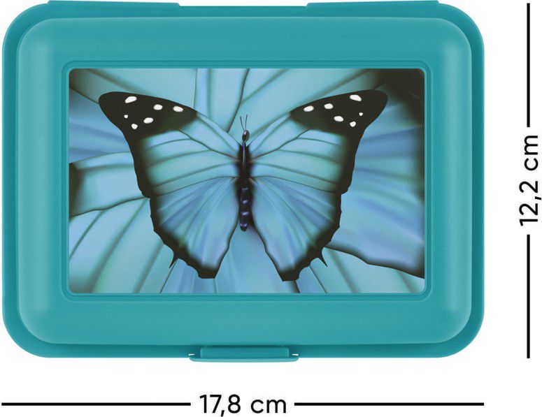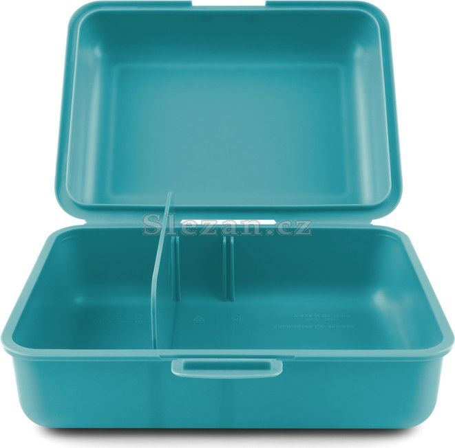 • Plastový box na svačinu v modré barvě. • Box má uzavírání na jeden zámek a dělicí přepážku. • Nedoporučujeme mýt v myčce.