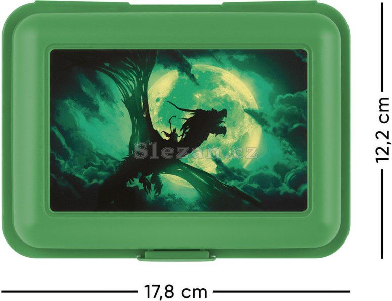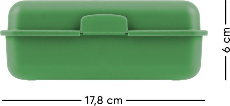 • Plastový box na svačinu v zelené barvě. • Box má uzavírání na jeden zámek a dělicí přepážku. • Nedoporučujeme mýt v myčce.