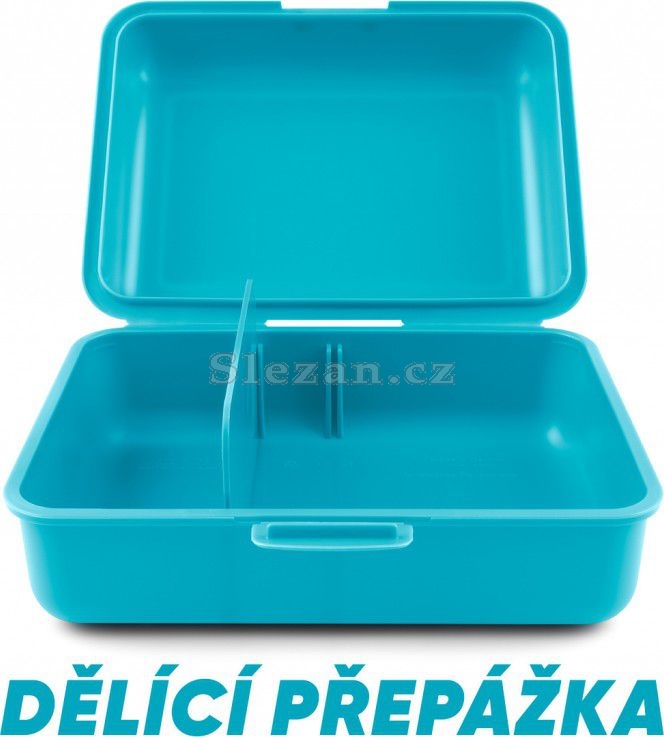 Plastový box na svačinu s uzavíráním na jeden zámek a dělicí přepážkou.