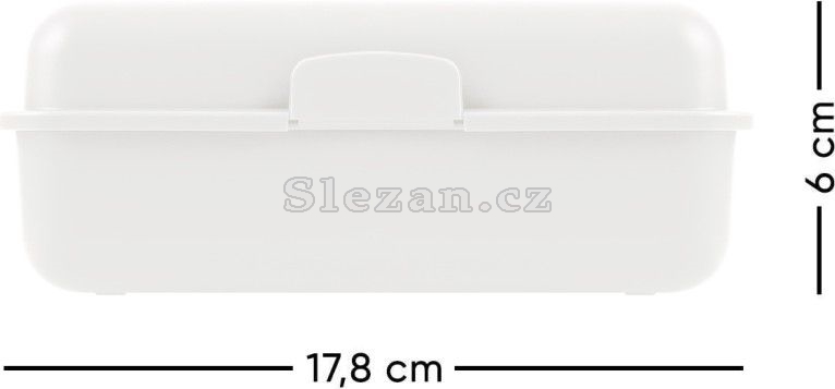 • Plastový box na svačinu v bílé barvě. • Box má uzavírání na jeden zámek a dělicí přepážku. • Nedoporučujeme mýt v myčce