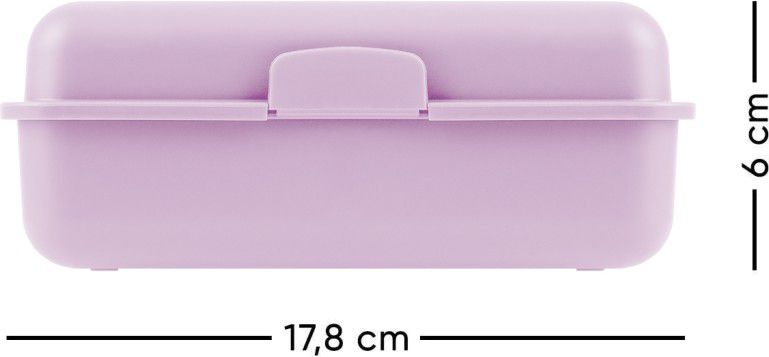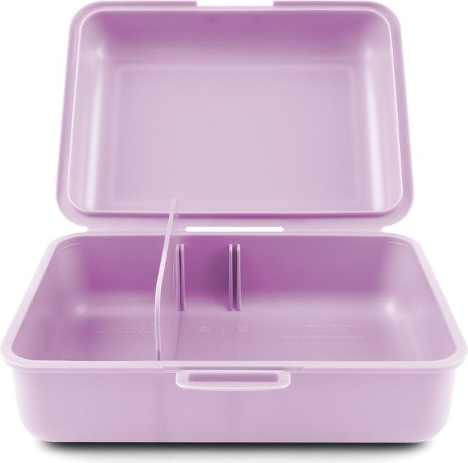 • Plastový box na svačinu ve fialové barvě. • Box má uzavírání na jeden zámek a dělicí přepážku. • Nedoporučujeme mýt v myčce
